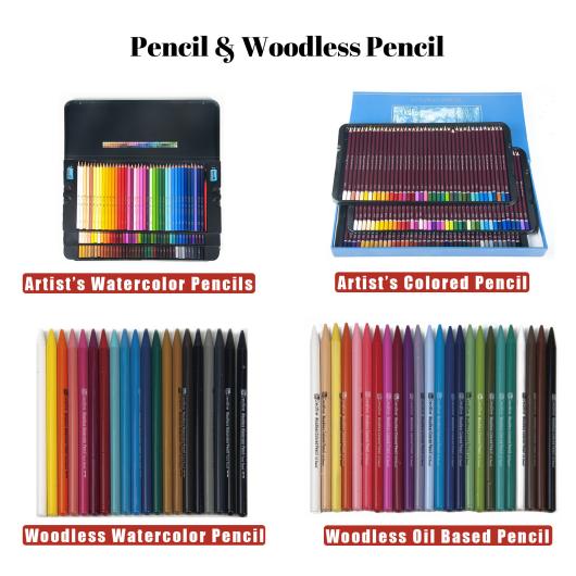 Künstlerstifte und holzfreie Bleistifte: Künstler-Buntstifte, Künstler-Aquarellstifte, Künstler-Graphitstifte, Künstler-Pastellstifte, Künstler-Metallicstifte, Künstler-Buntstifte, holzlose Aquarellstifte, holzlose Graphitstifte.
