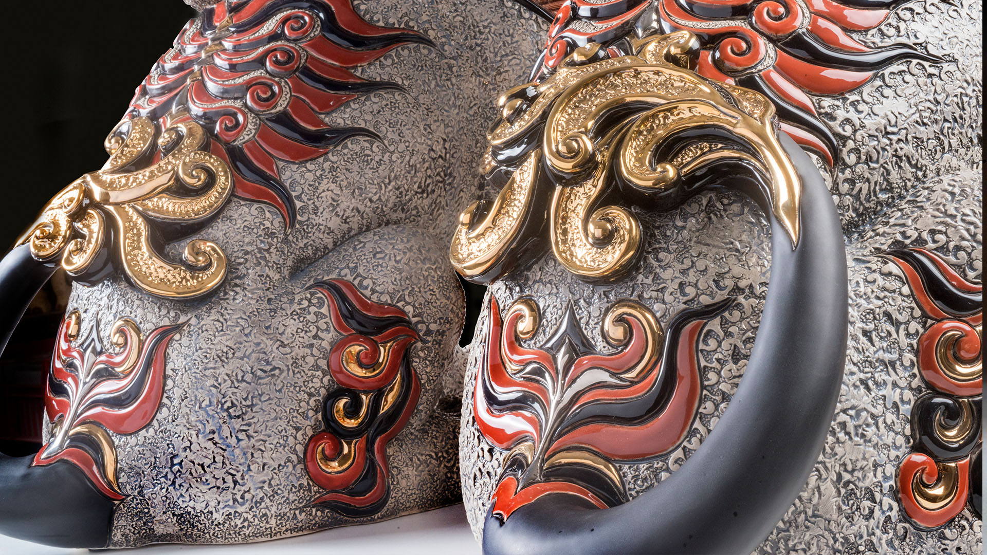 Creating our King Chinese Dragon sculpture with intricate details was indeed an exciting process that took over 2 years. From the modelling of the original piece, conceptualizing the dragon’s pose, size, and overall appearance to its final firing in the kiln… the design requires meticulous attention to details so patience, skill, and a passion for handmade are key to successfully creating such a complex and detailed sculpture. As every detail on this breathtaking piece, each individual scale on the dragon’s skin is meticulously hand carved by our most skillful artist with a steady hand and an eye for precision. To achieve the desired result, the dragon’s embellishment combines gloss and satin finishes. The gloss finish adds a reflective and shiny surface, while the satin finish provides a smooth and slightly matte appearance. This combination creates a visually striking contrast and enhances the overall aesthetic.
