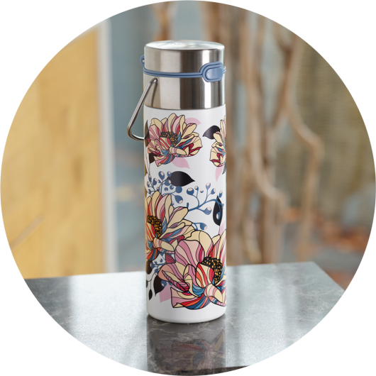 LEEZA fällt durch ihre exklusive, haptisch einzigartige Relief-Struktur auf, die nicht nur optisch begeistert, sondern auch ein angenehmes Gefühl in der Hand vermittelt. Die Doppelwand-Konstruktion sorgt für optimale Isolierung und hält Getränke sowohl heiß als auch kalt, je nach Bedarf. Dank des ultrafeinen 2-teiligen Siebs können Ihre Kunden Tee, Kaffee oder individuell aromatisiertes Wasser direkt in der Flasche zubereiten.