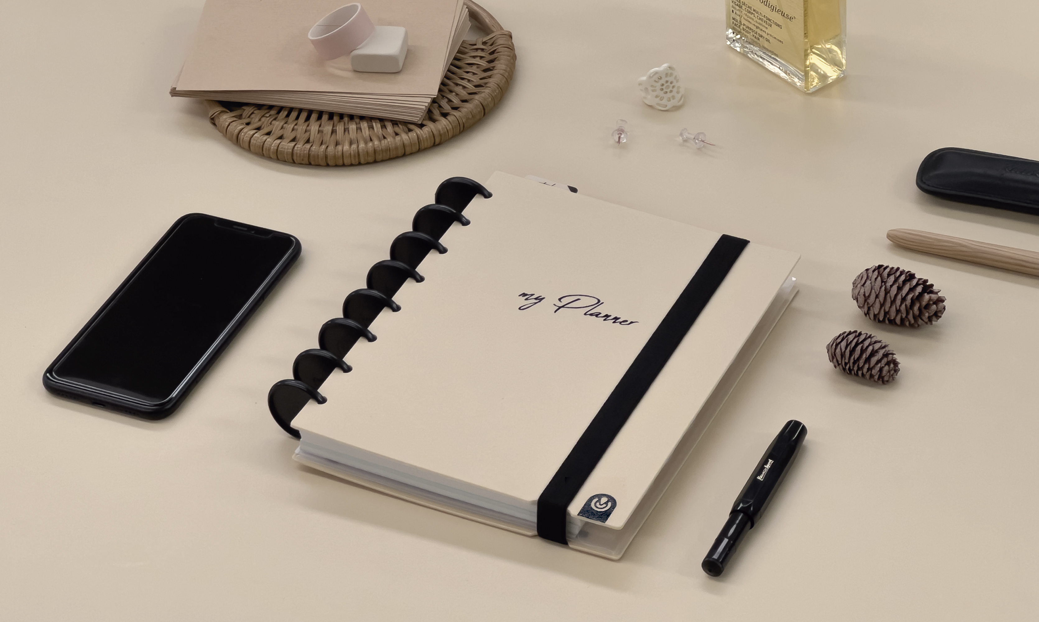 Verbessern Sie Ihre Planungserfahrung weiter mit unserer Auswahl an Zubehör (separat erhältlich): bunte Ringe, Papiernachfüllungen in verschiedenen Formaten (liniert, kariert, weiß, Punkte), Lesezeichen, Trennblätter, Haftnotizen, eine Lochmaschine, Polypropylen-Umschlag und Blattschützer.