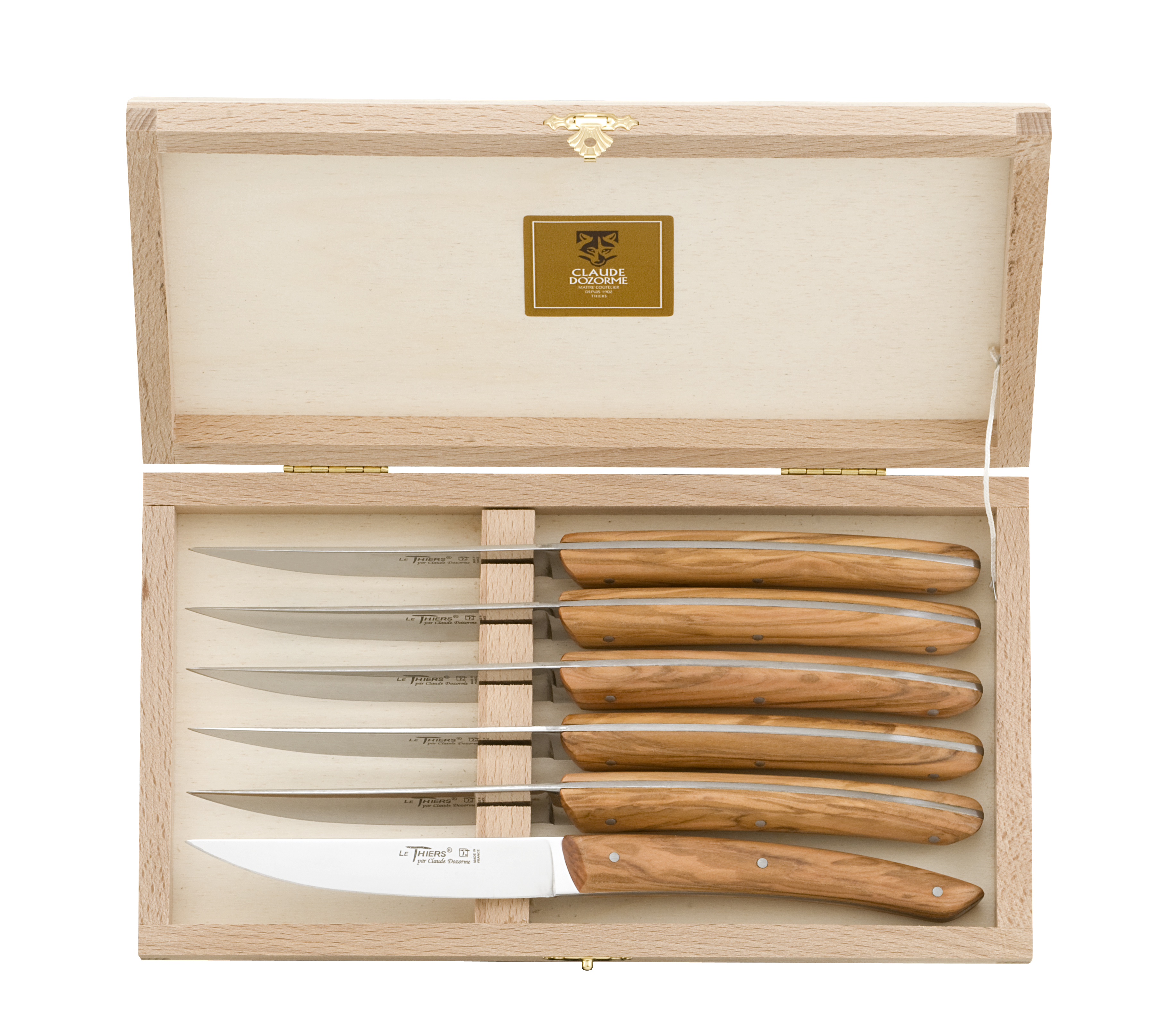 Claude DOZORME, the Master Cutler, was the first to design the Laguiole table knife. La Masion Claude DOZORME manufactures the widest range on the market : steak knives, carving knives, bread knives, cheese knives... up to the fish knives and "foie gras" knives ... without forgetting o large choice of forks, spoons and services for salad, fish...
