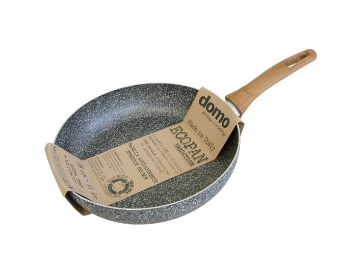 ECOPAN takes steps from Domo's will to support the environment. It is the 100% eco-friendly pan: in fact, thanks to technological evolution, we are now able to produce with recycled aluminum mainly originating from the recovery of aluminum cans (about 52 cans are needed to make a 28 cm frypan). Its reinforced non-stick (enriched with mineral microparticles), the inuductive bottom and the elegant wood effect handle, make Ecopan the ideal pan for any cooking. Ecopan range: deep frypan 20, 24, 26, 28, 30cm wok 28cm saucepan 16cm dutch oven 24, 28cm low casserole 24, 26, 28cm