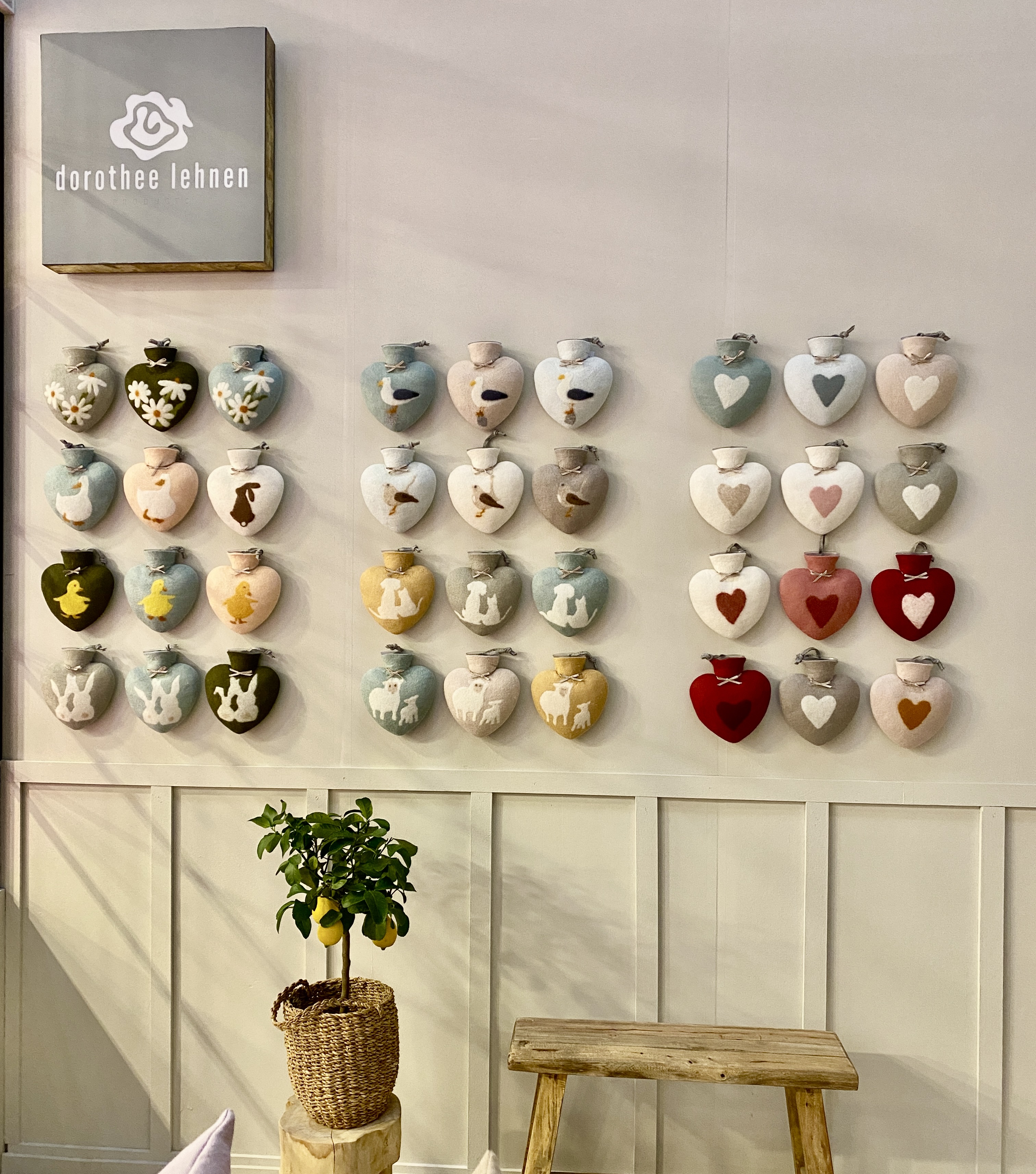 Saisonale Produkte wie Hasen-Geschirrtücher oder Hasen auf Wärmflaschen, Osteranhänger oder Weihnachtsanhänger unterstützen den starken, saisonalen Verkauf. Alle werden sorgfältig von Hand in unserem Atelier in Norddeutschland gefertigt.