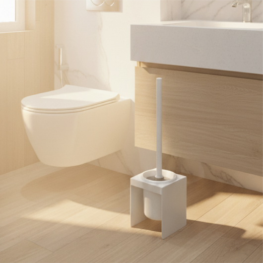 Design, discretion, and functionality in perfect harmony. This brush holder transforms an essential object into an elegant piece that naturally fits modern, bright bathrooms. Its solid structure and minimalist form evoke cleanliness and calm, while durable materials ensure long-lasting use and easy maintenance.
