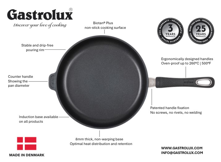 Mit Innovation im Herzen unserer Kultur verkörpert unser einzigartiges Antihaft-Kochgeschirr das Erbe der technischen Brillanz, für das Gastrolux bekannt ist.
