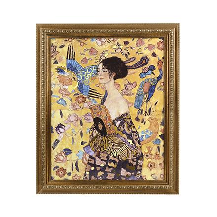 „Dame mit Fächer“ gilt als Klimts letztes vollendetes Porträt - 2023 versteigert zu einem Rekordpreis. Gedruckt auf einer Porzellanfliese in lichtechten, keramischen Farben, bleibt die Brillanz der Farben und der Echtgoldauflage dauerhaft erhalten. Der handgefertigte Echtholzrahmen verleiht dem Motiv zusätzliche Eleganz.