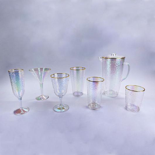 Elegantes schillerndes Trinkgeschirrset aus Acryl mit Goldrand