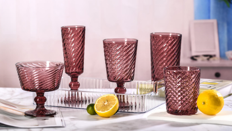 Machine-pressed soda lime glass with exclusive textured design. Ideal choice for dining.