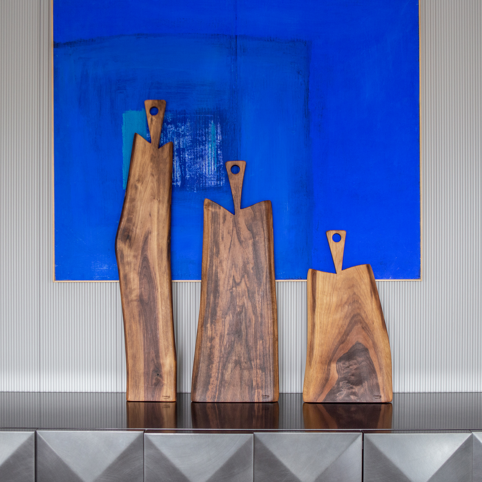 Das Tablett CiNise ist für Momente der Entspannung und Geselligkeit gedacht. Aus edlem Nussbaumholz gefertigt, vereint es Eleganz und Funktionalität dank zweier kreisförmiger Aussparungen, die sich perfekt zum Abstellen von Gläsern eignen, und einer zentralen Vertiefung, die als Aschenbecher dient.