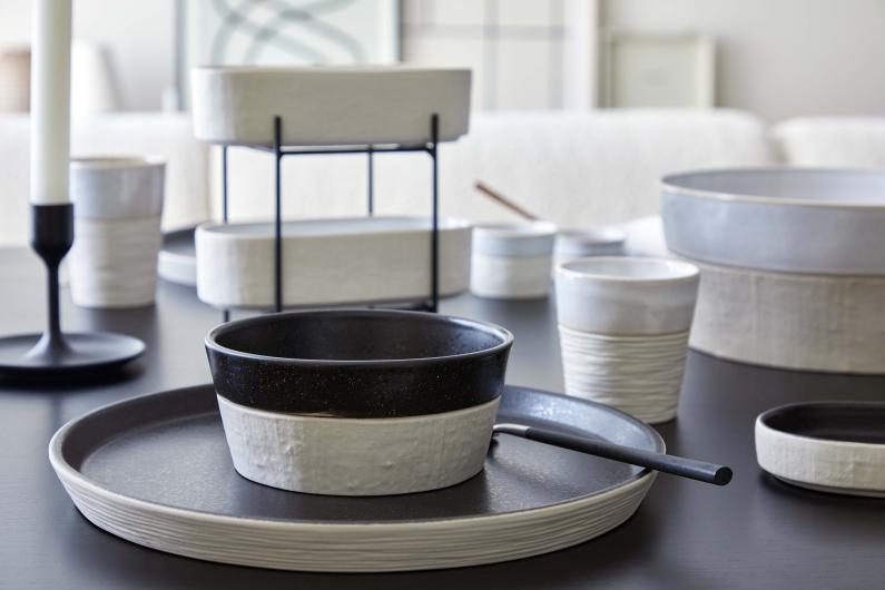 For his first collaboration with Costa Nova, the renowned German designer Carsten Gollnick took inspiration from the aesthetic world of Portuguese Atlantic coast, and created a distinctive tableware collection in fine stoneware. The remarkable color contrasts and structures of the Portuguese Atlantic coast, especially the border between water and land, was his source of inspiration to develop a special collection where straight lines, pure shapes and flowing surfaces meet matte, rough and sandy structures. The light, sandy beige color of “dune path” engage in perfect dialogue with the very deep, shinning tone of “latitude black”, inspired by the Atlantic.