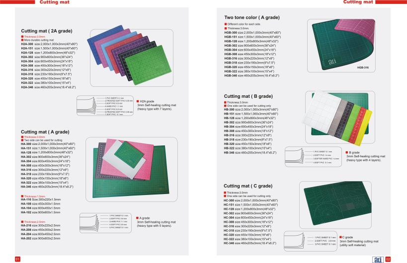 More durable,colorful cutting mat 1.5/2.5/3/mm thickness 5 layers self-healing cutting mat (heavy duty with 7 layers)