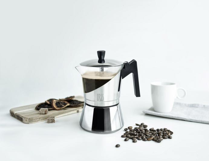 Suitable for all types of domestic hobs, including induction. Very pleasant visual experience thanks to its glass top. In addition to seeing how the coffee comes out, it helps us to see how much coffee is left while serving without having to open the lid. Very elegant design. Capacity for 6 cups.
