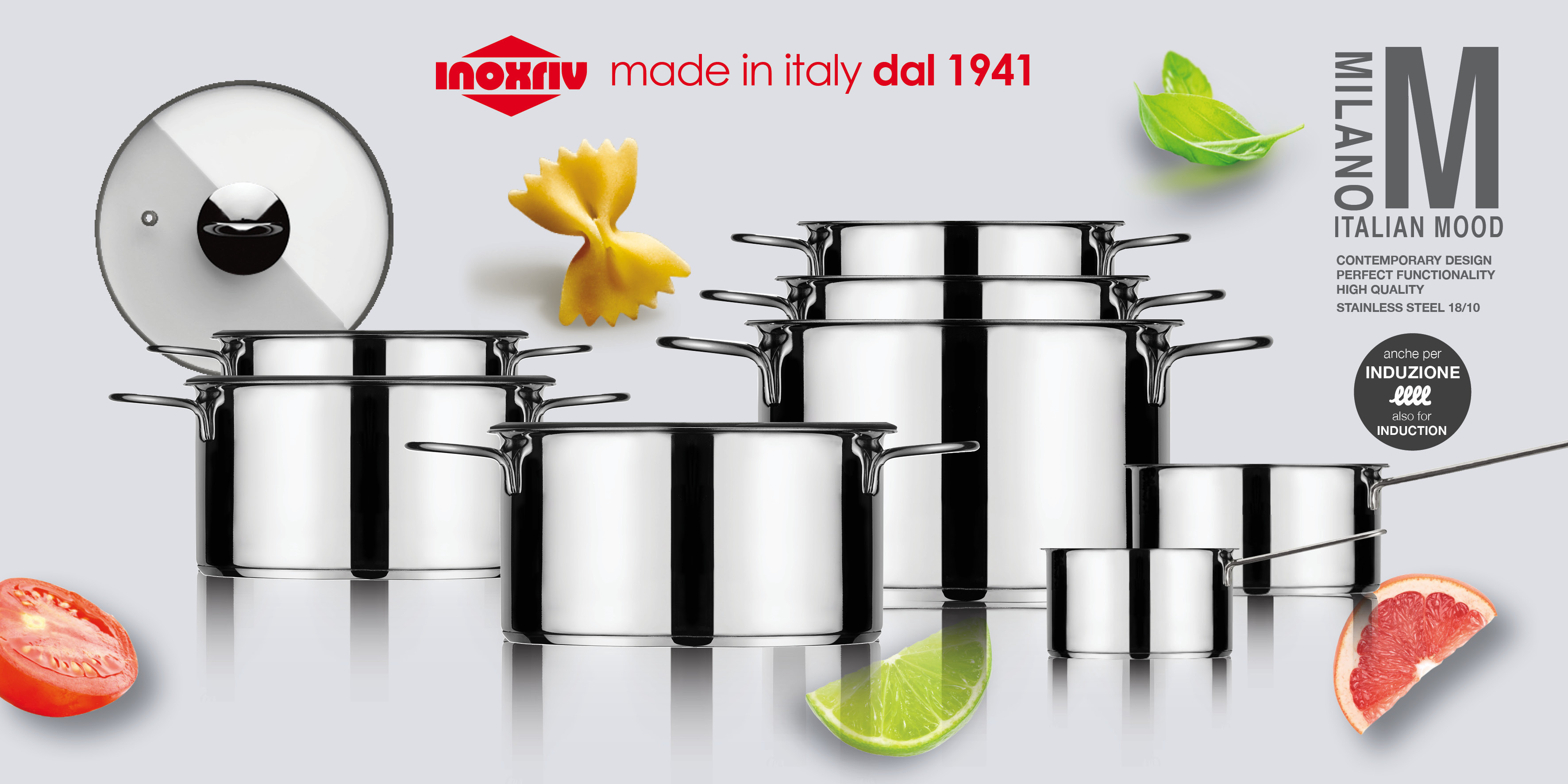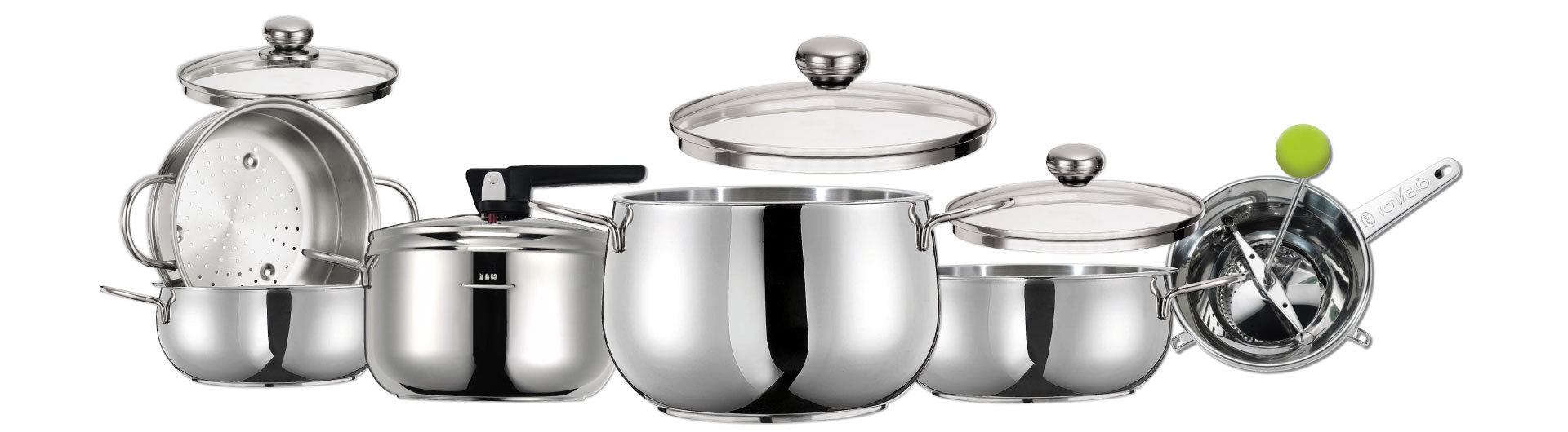 Cookware, cutlery, trays, gadgets, dining and kitchen innovative accessories, functional and of a high aesthetic quality, made ​​with a noble material: stainless steel. Guarantee of hygiene and safety, long life, and maximum cooking performances even on induction. A full range of tools for the home and for the catering: pressure cookers, pots, pans, pasta pots, steamers, baking pans, fryers and many other products to make it easy and pleasant to prepare and serve food and dishes and to improve the daily life. Manufactured in Italy in the respect of values ​​of eco-friendliness and environmental protection.