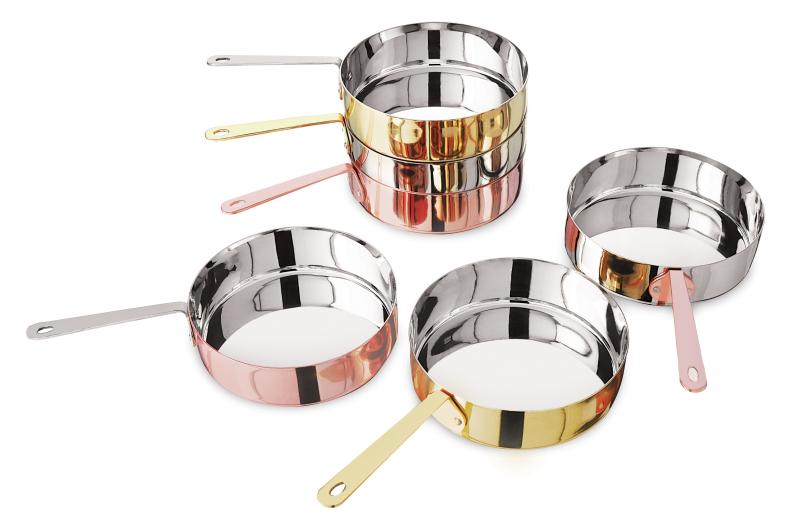 Warum nicht in Einer Edelstahlpfanne statt einem Teller oder einer Schüssel servieren? Unser Edelstahl-Präsentationsprogramm verleiht Ihrer Präsentation Farbe und Stil und ist vielseitig einsetzbar. Diese sind erschwinglich und langlebig. Diese sind mit Kupfer erhältlich und werden Ihnen helfen, Ihre Präsentation jederzeit zu Leben!