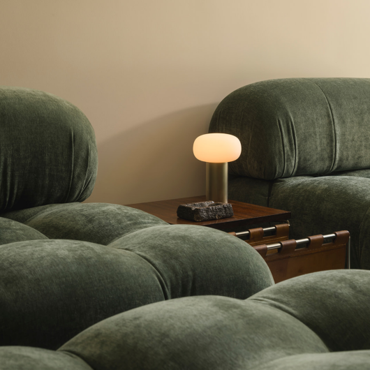 The latest piece in our collection pairs a mushroom-like silhouette with the softest glow. Its brushed bronze or gold finish gives an elegant, luxurious feel.