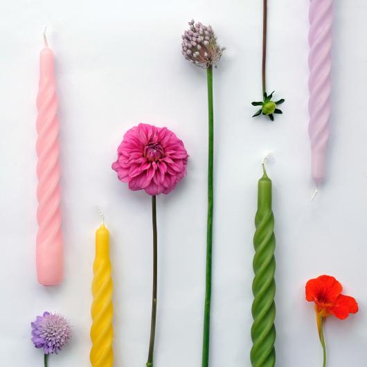 Candles with a Twist by KunstIndustrien are paraffin candles overdipped with colour. The brushed shimmering versions are all brushed individually by hand. Available in a wide variety of colours, colour combinations and in both mat and lacque versions.