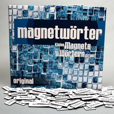 Diese Packung enthält 510 Magneten mit Wörtern und Silben, die Sie an Ihrem Kühlschrank oder einer anderen Stahlfläche anbringen können. Die Wörter lassen sich zu gefühlvoller Lyrik oder witzigem Unsinn zusammensetzen. Spielen Sie eine Weile damit und Sie werden merken, wie einfach Poesie ist. Mit Magnetwörter gestalten Sie nicht nur Ihre Küche wesentlich interessanter, sondern Sie wecken auch Ihre Kreativität zum Leben - und vor allem macht es Spass.