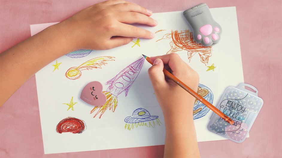 Entfessle deine Kreativität mit der Legami Kollektion Back to School; außergewöhnliche Designs, die Positivität und Freude in die tägliche Routine bringen. Entdecke die große Auswahl an Schreibwaren-Sets, pastellfarbenen Textmarkern mit zwei Spitzen, Stiften mit unsichtbarer Tinte, 3-farbigen löschbaren Gelstiften, Bleistiftspitzern mit Radiergummi, Federmäppchen und vielem mehr.