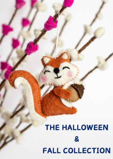 Bring the warm hues of autumn and the spooky spirit of Halloween to life with our Felt Fall & Halloween Decor Collection, handcrafted in Nepal from 100% New Zealand wool. This artisan-made series includes felt pumpkins, ghosts, witches, bats, fall leaves, black cats, harvest garlands, and trick-or-treat baskets—perfect for seasonal gifting, retail displays, and home décor.
