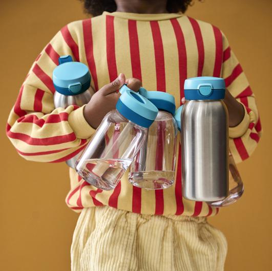 Entdecke unsere neuen Edelstahl Lunch-Produkte, designt um jeden Schultag einfacher und spaßiger zu machen. Warmer Tee im Winter und gekühltes Wasser im Sommer: Unsere Thermoflasche hält Getränke stundenlang auf genau der richtigen Temperatur. Mit einem Druck öffnen, trinken, während der Verschluss nicht im Weg ist, und mit einem hygienischen Klicken wieder verschließen. Auslaufsicher, sodass es keine Überraschung in der Schultasche gibt. Kombiniere sie mit unserer Edelstahl Brotdose, komplett mit herausnehmbarer Bento-Box und kleiner Gabel, damit du eine abwechslungsreiche und ausgewogene Mahlzeit einpacken kannst. Obst, Gemüse, Brote oder Snacks - alle haben ihren Platz. Robust und dennoch leicht, von Kindern einfach selbst zu öffnen und zu schließen - perfekt für alltägliche Abenteuer. Unsere Flaschen sind für kohlensäurehaltige Getränke geeignet, mit Ausnahme der transparenten Flasche mit Trinkhalm. Bitte beachten: Die Flaschen nicht zu stark schütteln.