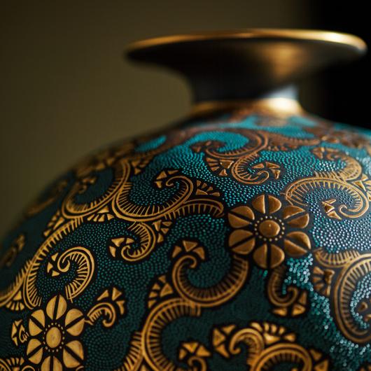 Painting style,” skillfully blends raised gold patterns