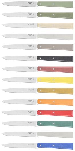 5 blades : Paring knife 10 cm pointed blade, Serrated knife 10 cm serrated blade, Vegetable knife with scraper back, Peeler, Spreader with spatula blade.