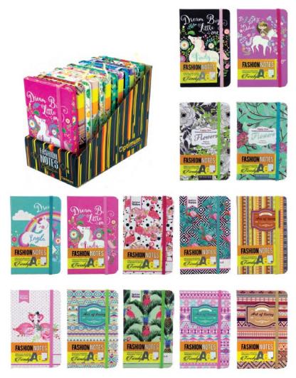 Hard cover exercise books (notepads) with Ivory paper and 10mm elastic band. We deliver it in displays of 12pcs or bigger displays of 144pcs.
