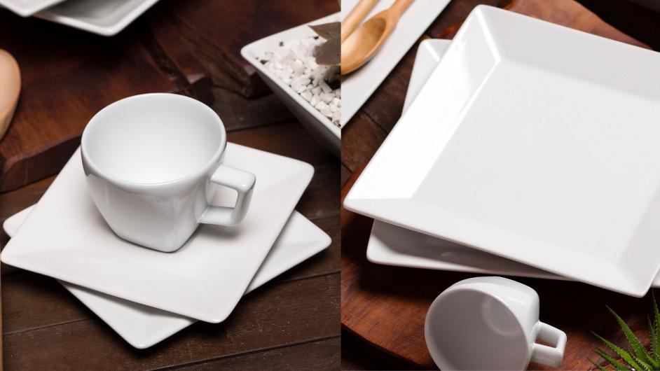 Irreverence and modernity set at the table with the famous square plate of the Porcelain line. The Quartier shape gives a bold and original touch to any decor. The 20 and 30 piece Sets contain flat plates, deep plates, dessert plates, tea saucers and tea cups.