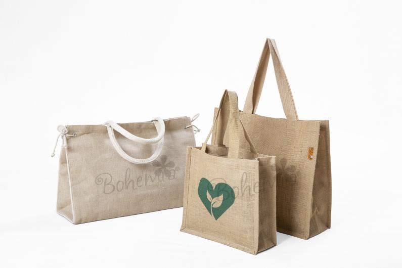 Customisable Jute bags and sustainable bags in different shapes and sizes. May be printed or embroidered with custom artwork or logo.