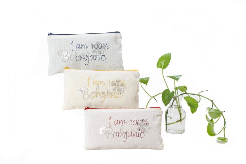 Back to School items, toiletry pouches, beauty bags in natural, organic and sustainable fabrics.