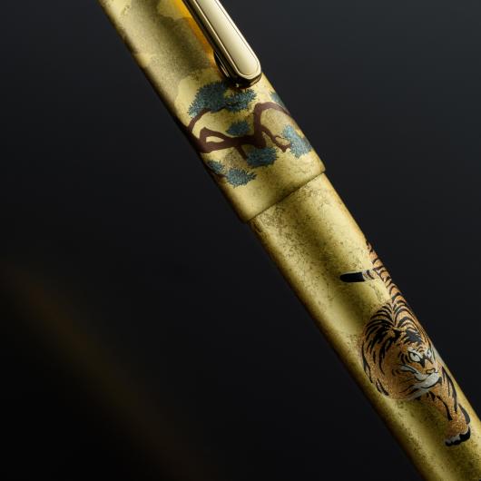 The technique called "Momi-chirashi" crushed gold leaves are placed on barrel. Modern Maki-e technique is applied on the motif. "Slip & Seal Mechanism" that prevents ink from drying out is mounted.