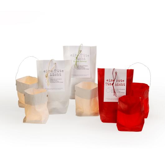 Eine rote Tüte Licht mit 4 roten Papier-Tüten