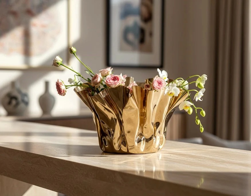 The Faceit Tray is an architectural study in precision, defined by its sharply faceted edges and angular lines. Designed as a functional showpiece, it brings structure and sophistication to presentation.FACETED FORM: Crisp folds and reflective planes create striking geometric depth.POLISHED SURFACE: A radiant finish that amplifies its sculptural character.STATEMENT: A bold design that transforms simple arrangements into striking displays.• As a serving tray: Ideal for hors d’oeuvres, cocktails, or refined table settings.• As décor platform: Elevates candles, flowers, or glassware with geometric flair.• As a statement piece: Works alone as a sculptural accent on console or coffee tables.A striking choice for those drawn to bold geometry and contemporary refinement
