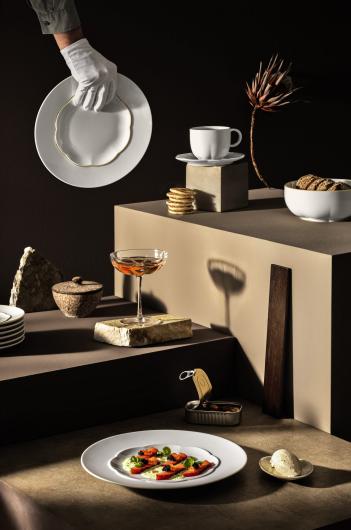 „Sonetto“, italienisch für „das Sonett“, steht für die älteste Form italienischer Poesie, ein melodisch vorgetragenes Gedicht. Und so schafft Rosenthal mit der neuen Kollektion ein wahres Gedicht aus Porzellan. Statt Strophen und Versen orchestriert die neue Linie organische und florale Formen sowie vielfältige Materialien. Kulinarische Highlights können auf verschiedenen Ebenen kunstvoll in Szene gesetzt werden. Bei den Tellern spielt Sonetto mit Höhen und Tiefen sowie Trompe-l´Oeil Optik. Ein erhobener Spiegel in Blütenform setzt beispielsweise feinste Gerichte auf eine Art Podest. Florale Formen kommen zudem bei den verschiedenen Bowls, Tassen und Tellern zum Einsatz, sei es bei der äußeren Formgebung oder bei kleinen Details wie bei den Henkeln der Tassen. Farblich orientiert sich die Kollektion an feinen weißen Glasuren, teils glänzend, teils matt. Goldränder setzen elegante Akzente. Mit rauem Handmade-Charakter und in robusten Formen aus Steinzeug hergestellt, setzen hingegen Schalen auf Fuß, Bowls, Gießer oder kleine Gefäße mit oder ohne Deckel gekonnt Kontraste zu den feinen Porzellanartikeln.