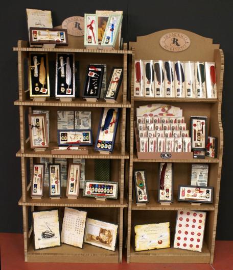 Solution complete of shelves in elegant ecologic material, realized based on your space availability, with selection of our best sellers among classic writing sets, sealing tools and desk accessories.