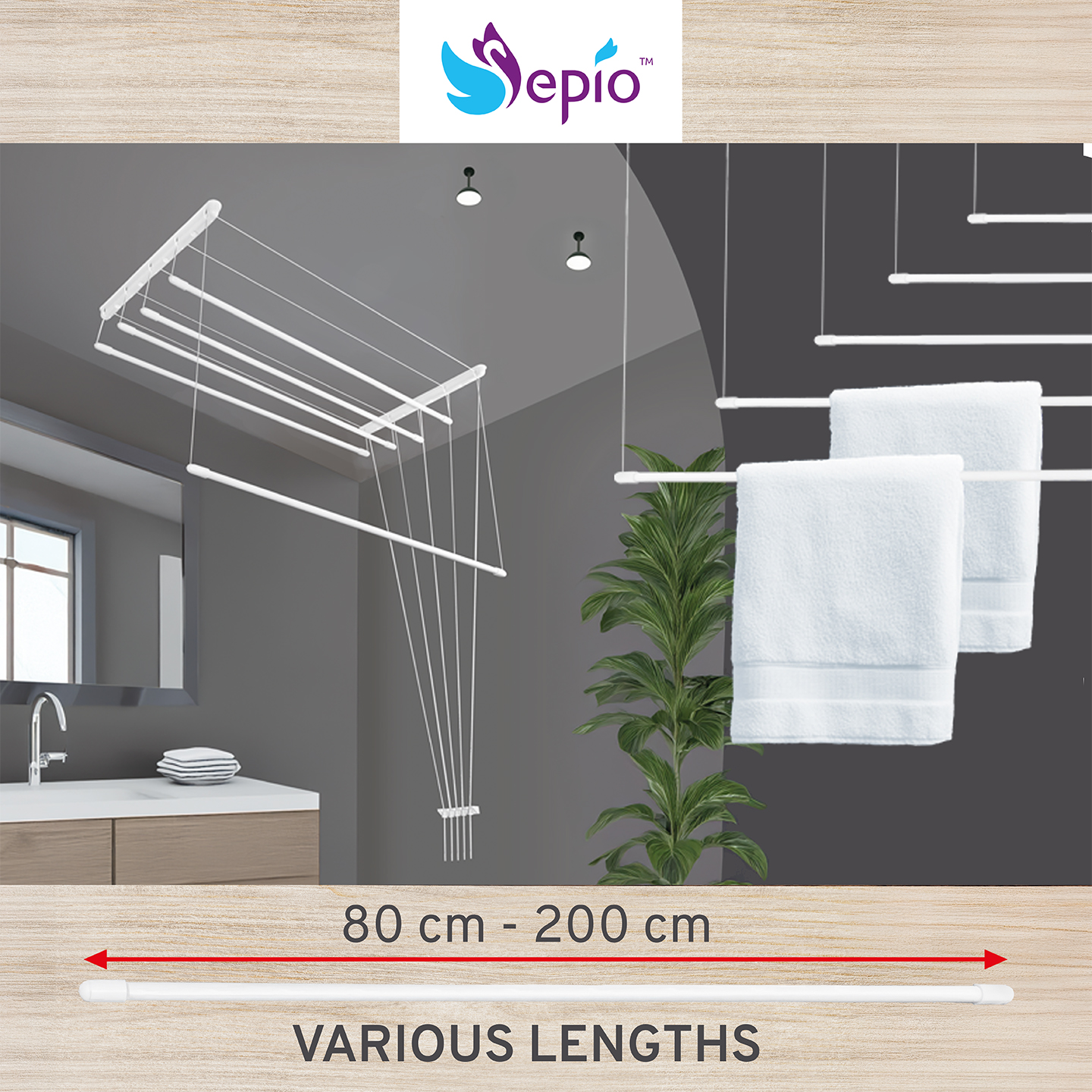 Flexible Optionen – Erhältlich mit 5, 6 oder 7 Stangen, in Längen von 80 cm bis 200 cm – oder auf Wunsch maßgefertigt.
