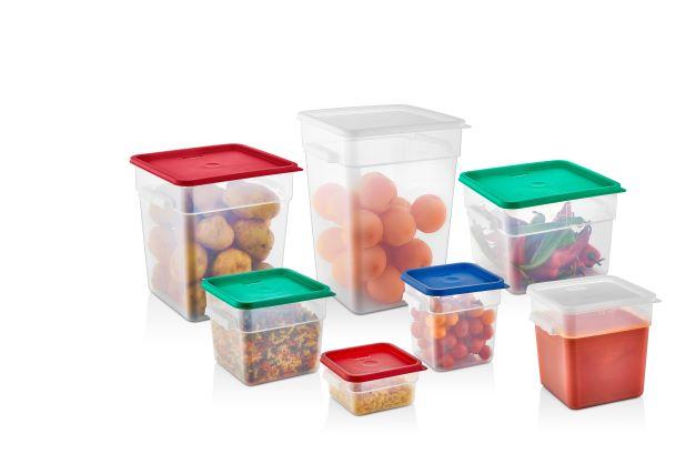 • Made of health safe PC and PP polycarbonate raw material. Lids are made of PP polypropylene and they are available in clear, red, green and blue colors.