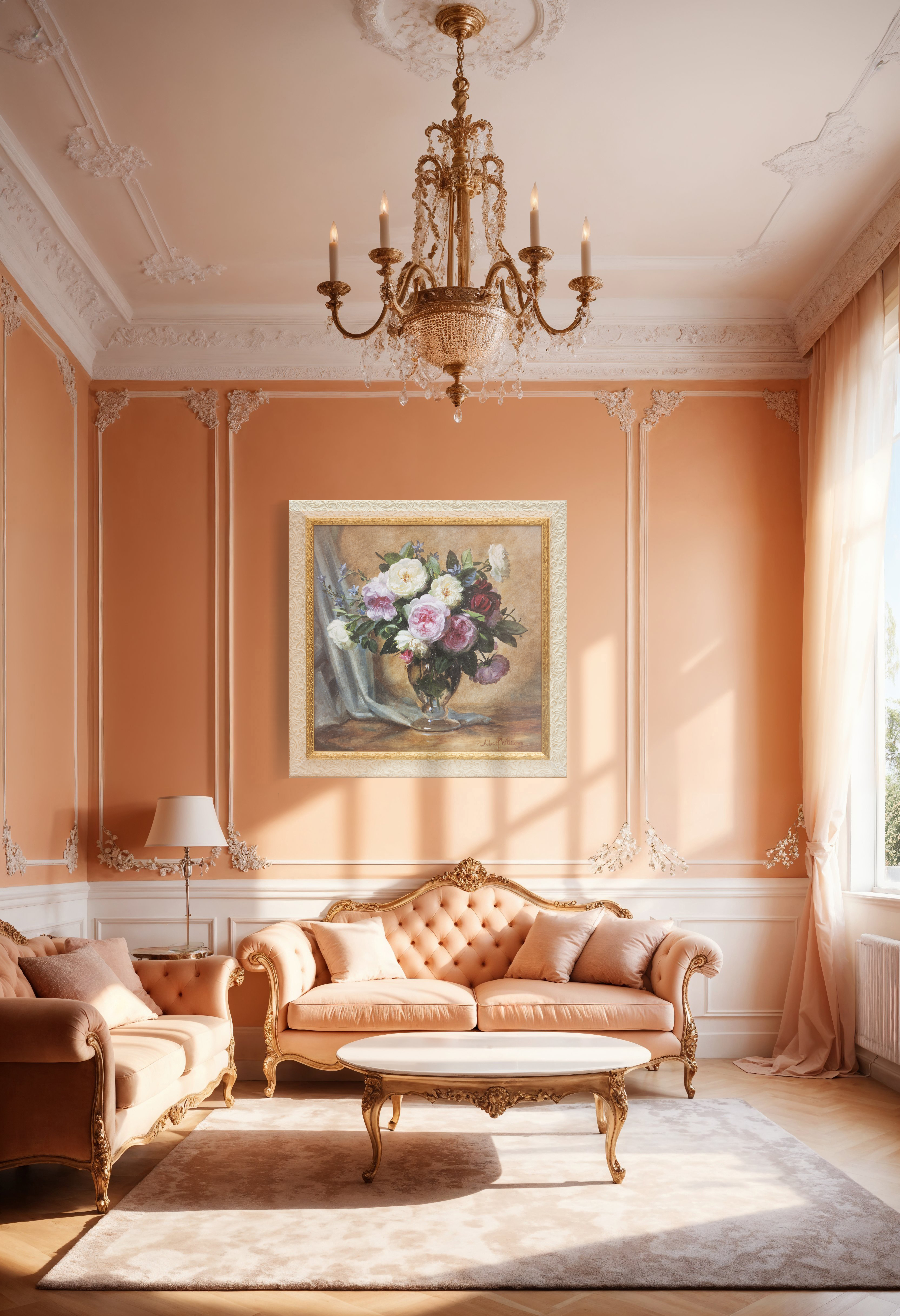 Eine eindrucksvolle französische Landschaft von François Lim, einem wenig bekannten Künstler mit bildnerischem Feingefühl für die Einfangen leuchtender und farbenfroher Landschaften. Das Werk ist mit einem barocken Holzrahmen mit Reliefdekor verziert und mit elegantem antikem Elfenbein und einem patinierten braunen Innenrand versehen, der der Komposition Tiefe und Präsenz verleiht. Die Kombination aus der Schlichtheit der Landschaft und der Pracht des Rahmens schafft eine harmonische Balance zwischen Natürlichkeit und dekorativem Klassizismus. Größe: 72 x 92 cm