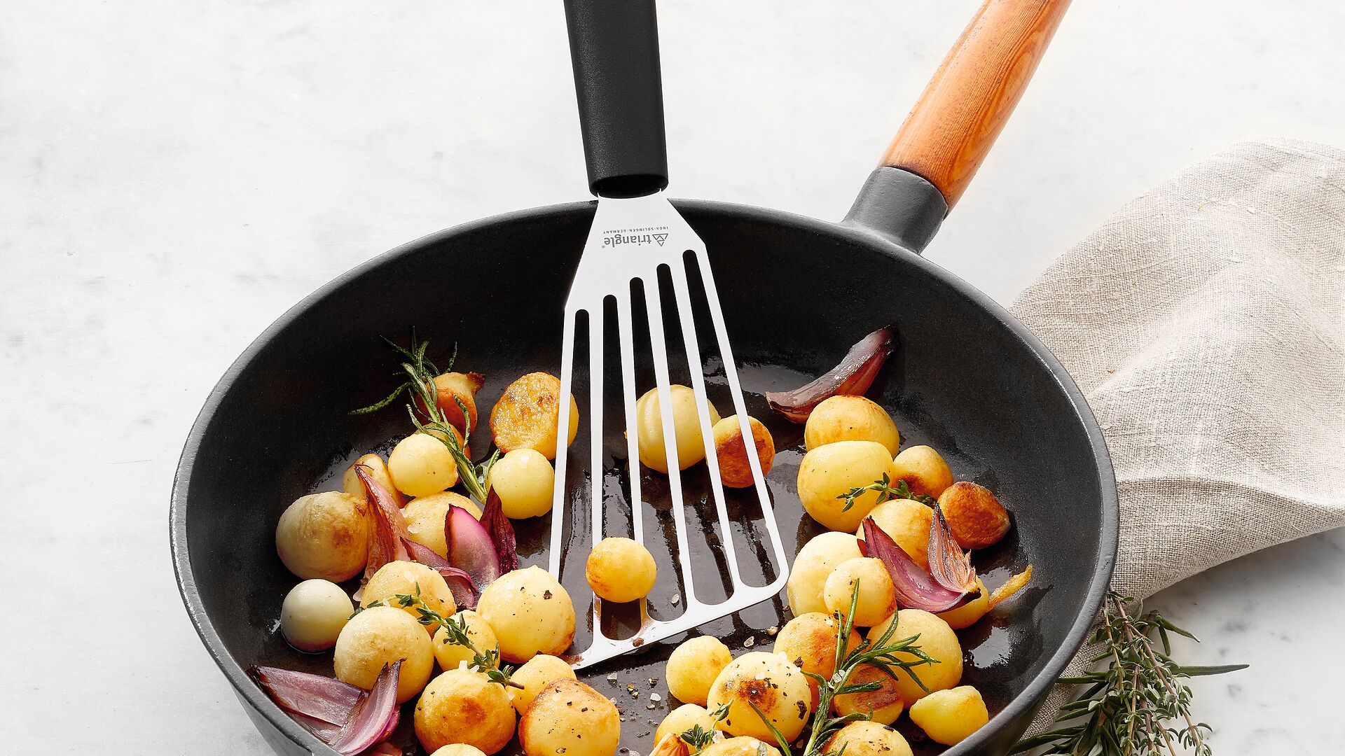triangle ist und bleibt ein Solinger Familienunternehmen und damit wichtiger Wirtschaftsfaktor der Region. Ohne in Qualität und Funktionalität unserer Küchenwerkzeuge Kompromisse einzugehen, nutzen wir die Möglichkeiten umweltbewusster Produktion. Das beinhaltet die Verwendung von Kunststoffen aus recyceltem Speisefett und nachwachsenden Rohstoffen, die Rückbesinnung auf nachhaltige Werkstoffe wie lokale Hölzer, die Minimierung von Verpackungen und das Upcycling von Produktionsresten zu neuen Produkten.