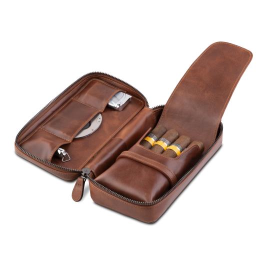Kompaktes Zigarrenetui aus Echtleder – Platz für bis zu 4 Zigarren & Zubehör – Minimalistisches Design von Crown & Tiger