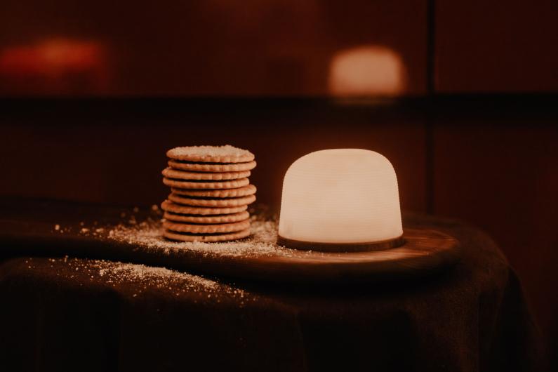 Diese besondere Fondant-Kollektion wurde entworfen, um Menschen mit einander zu verbinden, indem sie die Funktionalität der Serviertabletts mit einem intimen Lichtschein kombiniert. Die sanften Kurven der Lampe und die warmen Holztöne der Tabletts spielen subtil auf geschmolzene Schokolade an. Zusammen schaffen sie eine einladende Atmosphäre, die sowohl im Innen- als auch im Außenbereich für Gemütlichkeit sorgt.