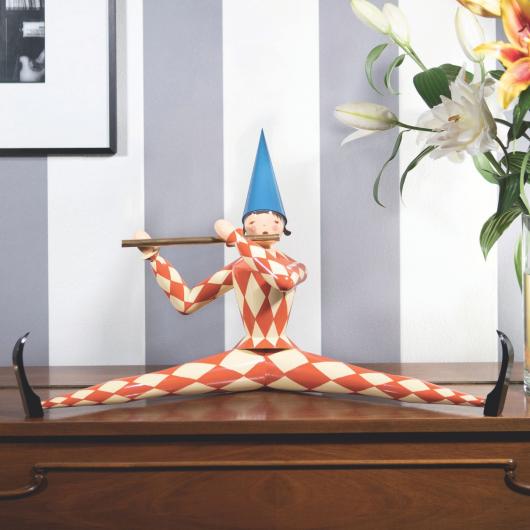 Das Dekor seines charakteristischen rot-weiß karierten Anzugs erfordert beim Bemalen besonders viel Geschick, eine äußerst ruhige Hand und ein gutes Auge. Handwerk und Design vereinen sich bei dieser Figur zu einem Kunstwerk. Stilvoll und von zeitloser Schönheit.