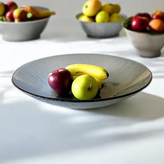 This collection features larger glass plates, platters, trays and bowls perfect for grand displays. Also available in dishwasher-safe colors, these vibrant glass pieces combine functionality with a splash of color, and are perfect for buffets or events.