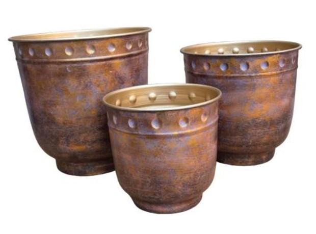 Our handcrafted iron planter with a striking antique gold textured finish is designed for both indoor and outdoor décor. The modern rounded silhouette blends durability with elegance, making it perfect for showcasing plants, flowers, or decorative arrangements in homes, gardens, patios, and balconies.