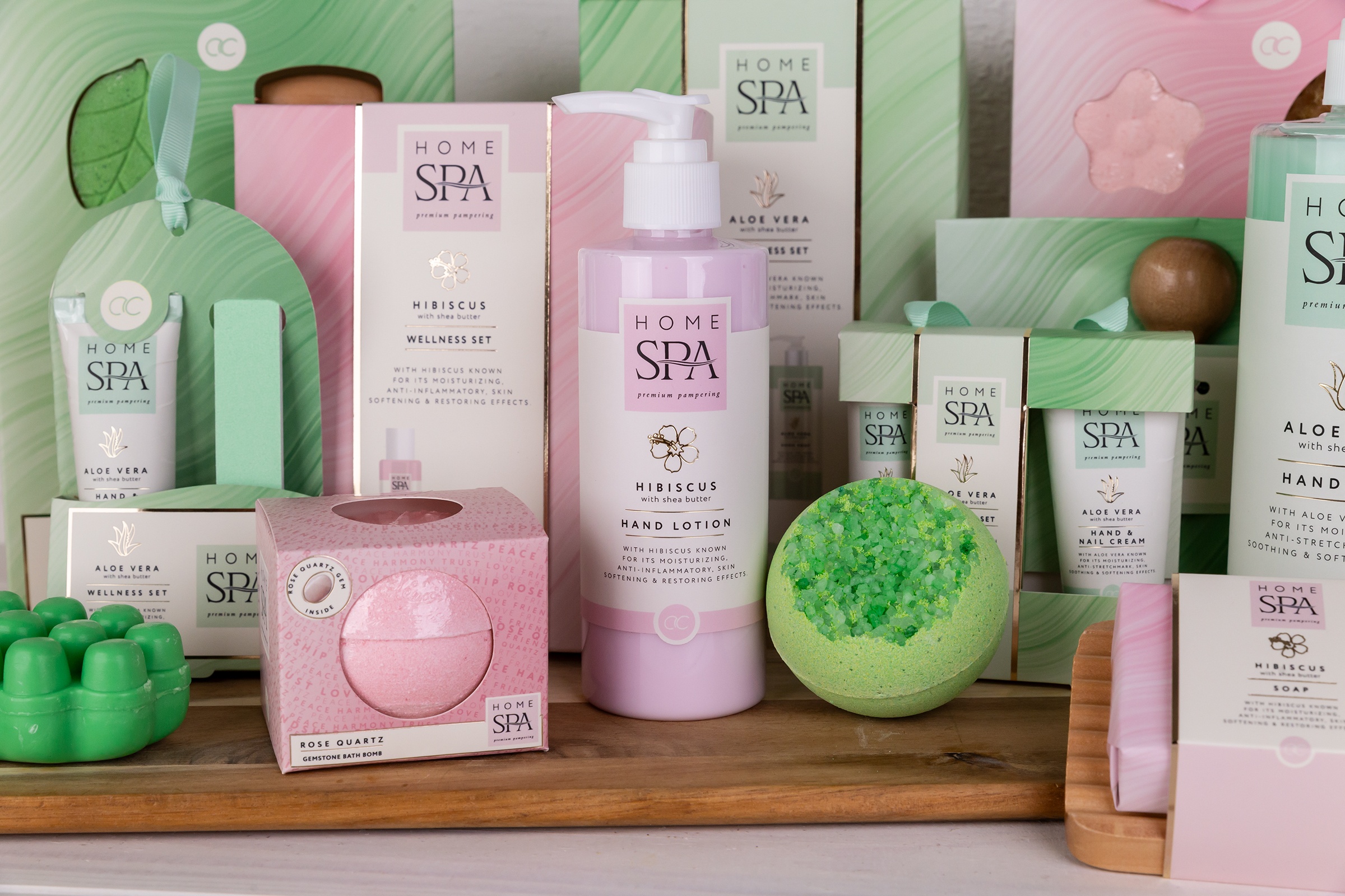 Bath & Body:Bath-shower gels, liquid and solid soaps, body lotion/-butter, bath pearls and varying combinations