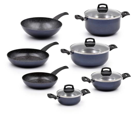 Upgrade your kitchen with our high-quality Cookware Set, crafted with extra-strong aluminum for durability and excellent heat distribution:
