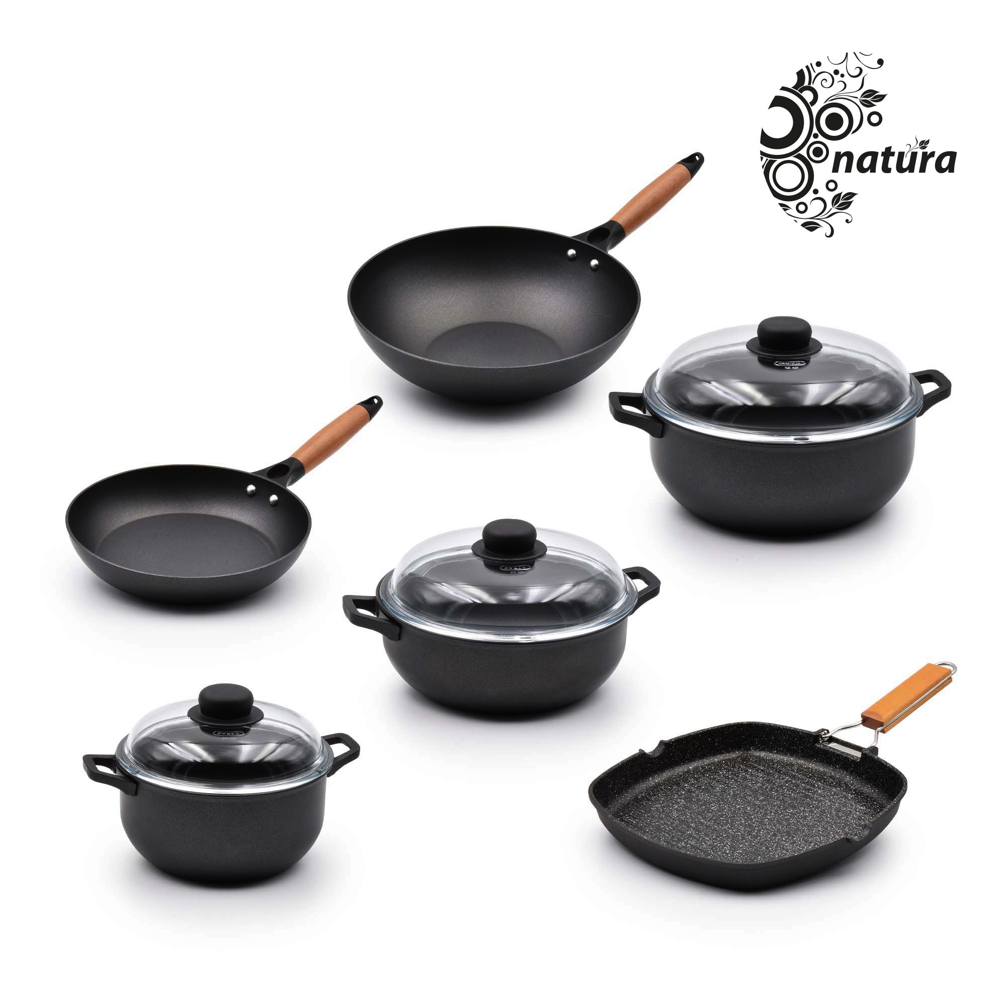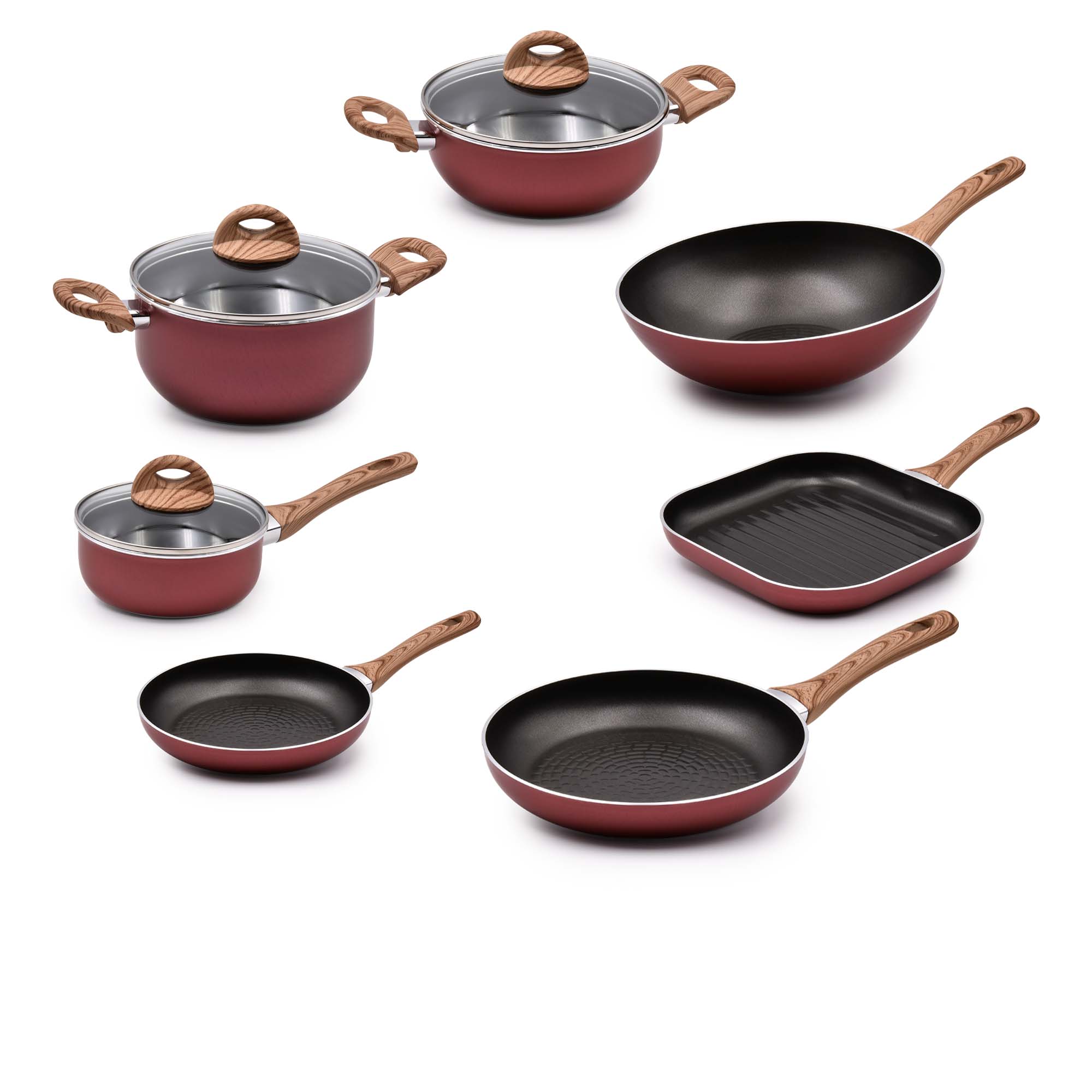 Upgrade your kitchen with our high-quality Cookware Set, crafted with extra-strong aluminum for durability and excellent heat distribution: