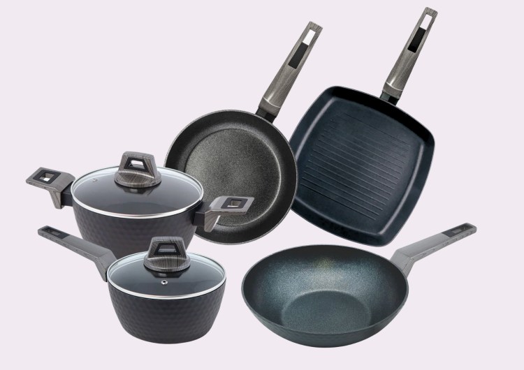 • Non stick cookware diamond design finishing, available for all kitchens types
