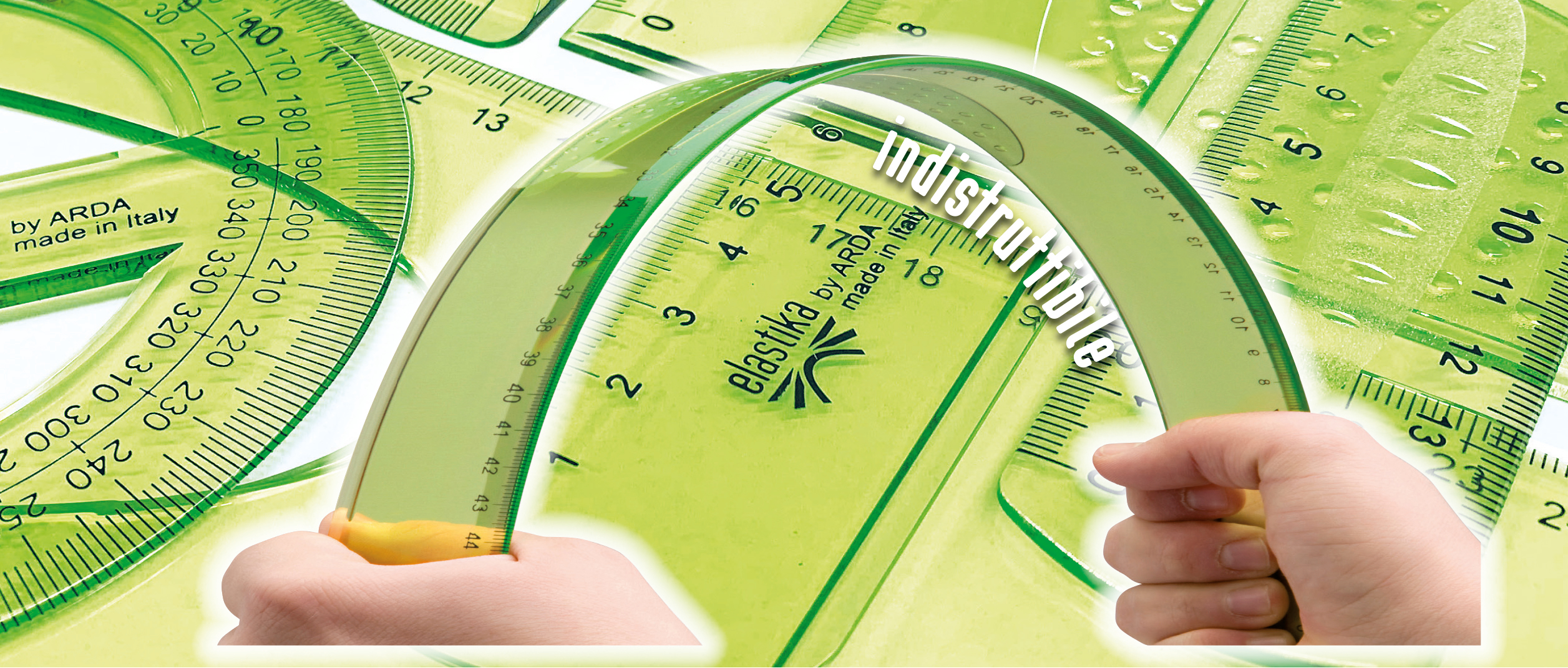 From Arda’s researches was born Elastika, an innovating range of technical drawing instruments made with a special material that allows an extraordinary result: after bending it has the capacity to come back to its original shape without any damage, a full perception to handle a real technical drawing instrument with all the flexibility and other essential features: transparency, form stability and measurement precision.