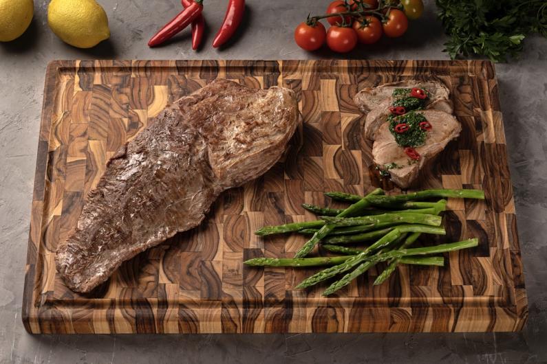 The traditional inverted teak board cannot be missing in your home, and especially in your barbecue.